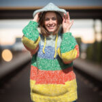 Note: The sweater is knitted with 1 strand off-white during the hole work, together with 1 strand of color.